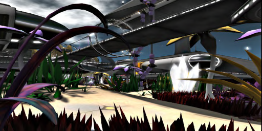 There have been mixed reviews about the ”creativity or artistry” of this sim, but isn’t art by its very nature subjective? In my humble opinion I think that Mantis Oh has achieved what he set out to do with his sim and if you want an experience that is unique in SL then you will want to take some time to thoroughly explore the seven levels of the Ascension tower and lose yourself in a mysterious world where musical notes appear from under your feet, robotic bumblebees hover close by and particles shimmer in the alien atmosphere.