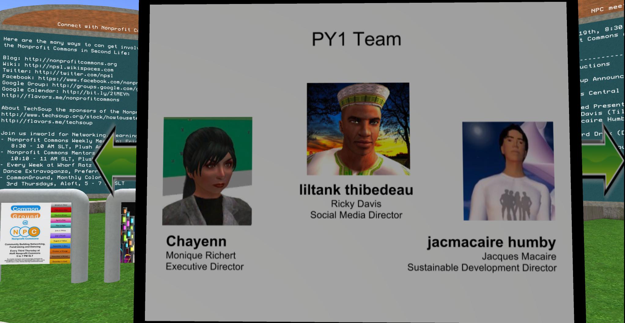 The featured presentation at this meeting was by PY1 a nonprofit organization – Protect Yourself 1 (PY1), Executive Director Monique Richert (Chayenn in SL), Social Media Director Ricky Davis (Liltank Tibedeau in SL) and Sustainable Development Director Jacques Macaire (jacmacaire humby in SL), who will discuss their innovative performance, social media and virtual projects focusing on HIV/AIDS prevention and environmental awareness. Jacmacaire Humby aka Jacques Macaire, PY1 Sustainable Development Director , joined PY1 in 2012 to develop the BE A PROTECTOR Campaign.